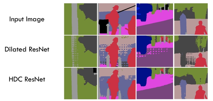 其中是层的dilation rate, 是到层最大的dilation rate, 对于最后一层, 就有, [1, 2, 5]就是一个可行的方案.